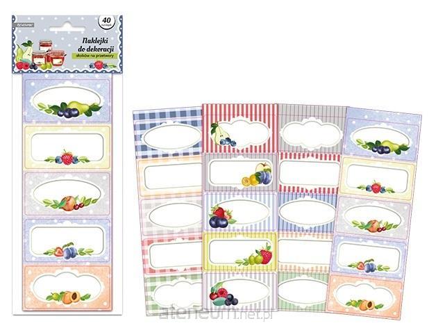 Zestaw zawiera 40 prostokątnych naklejek/etykiet do dekoracji słoików na przetwory. Na każdej naklejce miejsce na wpisanie nazwy.