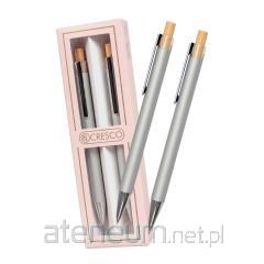 Model zestawu piśmiennego MASTER w atrakcyjnej kolorystyce ze złotymi wykończeniami. Kolekcja obejmuje pióro wieczne ze stalówką irydową oraz długopis. Pióro wieczne ze stalówką irydową zasilane standardowymi nabojami atramentowymi. Długopis posiada pstrykany system wysuwania wkładu wielkopojemnościowego typu Zenith. Komplet zapakowany w eleganckie etui skóropodobne 38.