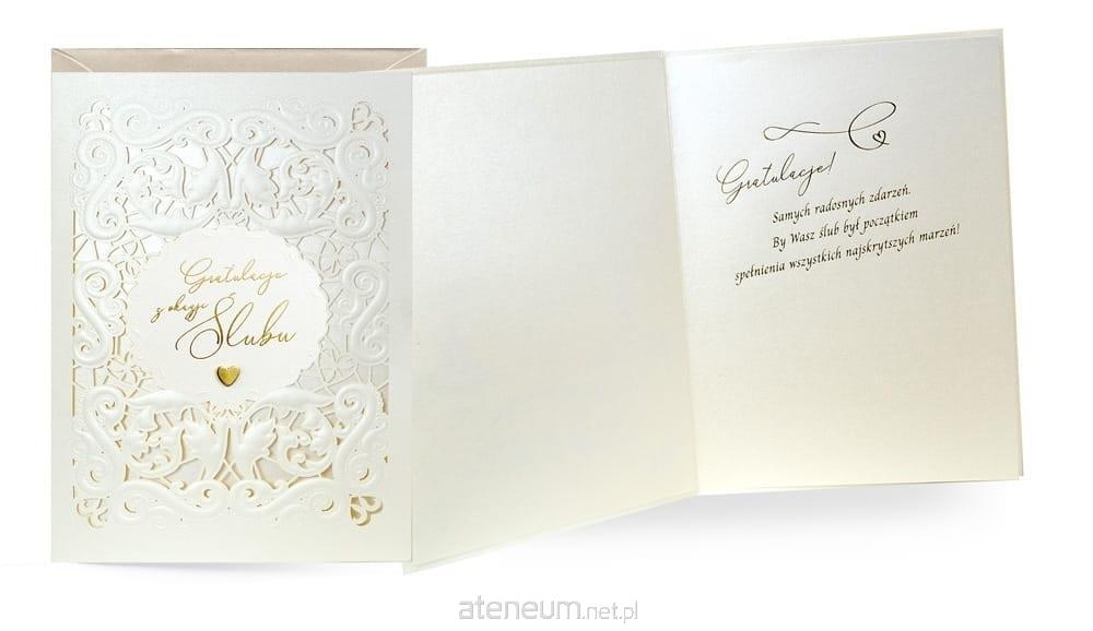 Karnet Dream Cards Plus "Ślub" w powiększonym tzw. Angielskim formacie 140x190 mm. Kartka z ozdobnej serii Dream Cards Plus robi wrażenie dzięki atrakcyjnej kolorystyce i ciekawym zdobieniom. To idealny wybór łączący przyjazną cenę z jakością. Cechy szczególne: wielkość: 14,5 x 19,5 cm po złożeniu kopertą, wnętrze: wyjątkowe życzenia w środku, w komplecie: dopasowana kolorystycznie koperta. zdobienia: różnorodne, bogate (w zależności od wzoru: przyklejane dekoracje, elementy biżuteryjne, odstawniki, brokat, metaliczne folie, tłoczenia itp.), okazja: ślub