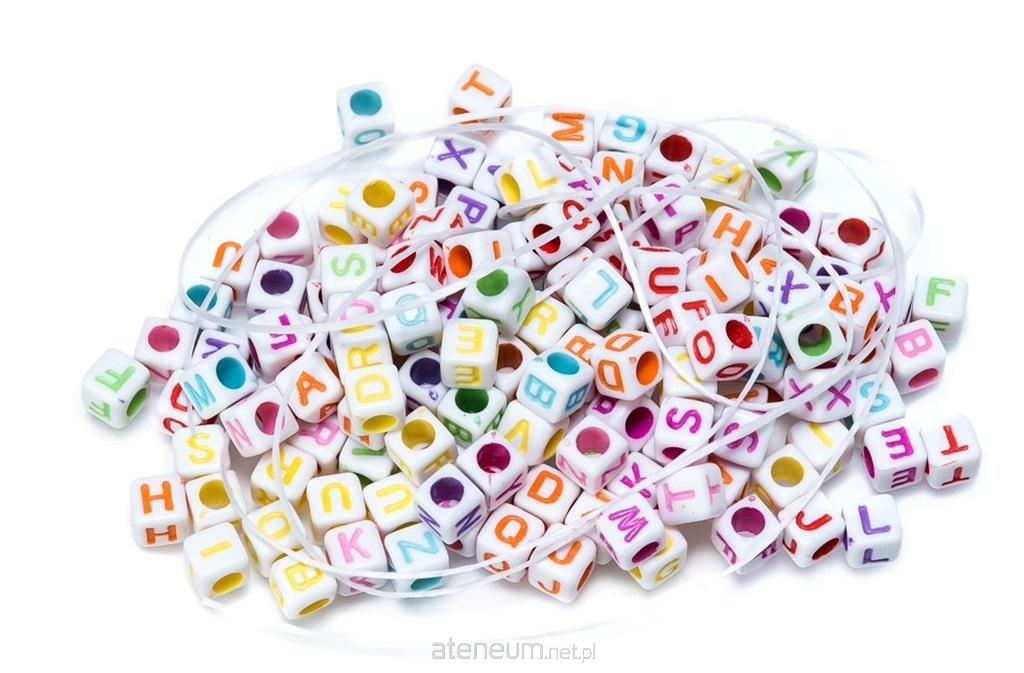 Koraliki literki + sznurek 1 m waga: 20 g kolor: białe kostki i kolorowe literki