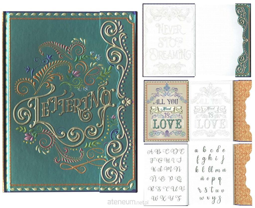 Ekskluzywny notatnik zamykany na magnes, w twardej, ozdobnej i wytłaczanej okładce. Wyprodukowany został w Hiszpanii. Wewnątrz posiada strony w większości w kropki, ale poza tym są strony do kaligrafii oraz gładkie z artystycznymi ornamentami. Na 144 stronach znajdziemy również niekiedy kolorowe hasła. Dodatkowo ma 2 zakładki - wstążki. Doskonały prezent dla chcących trenować kaligrafię, jak i prowadzić swój wyjątkowy pamiętnik. Na zdjęciu po lewej stronie widoczna jest okładka, natomiast po prawej są 3 przykładowe rozkładówki notatnika.