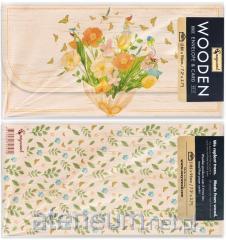 Karnet drewniany C6 + koperta Kobieta z bukietem