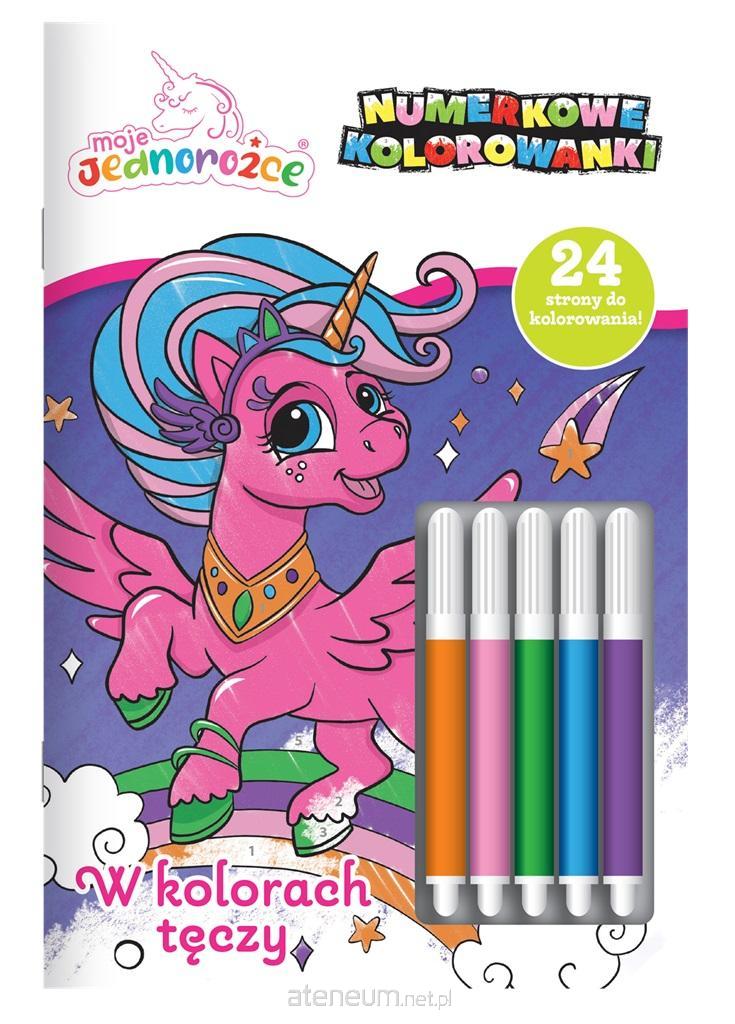 Książeczka z dołączonymi flamastrami w 4 kolorach. Numerkowe Kolorowanki to mnóstwo zabawy, a zarazem świetny trening kreatywności i precyzyjności! Wystarczy sprawdzić, jakiemu kolorowi odpowiada dany numer flamastra, a następnie pokolorować nim kształt. Do pokolorowania 24 niesamowite obrazki! Świat jest kolorowy! Nazwy kolorów w dwóch językach: po polsku i po angielsku.