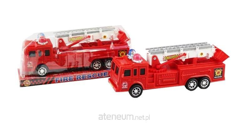 Plastikowy wóz strażacki z ruchomą drabiną. Produkt zapakowany w kartonową podstawkę z przezroczystym kloszem. Zabawka dla dzieci od 3 lat. Podane wymiary stanowią wymiar opakowania.