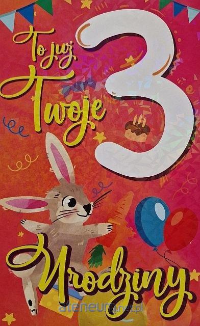 Drewniana kartka urodzinowa - Trzecie urodziny