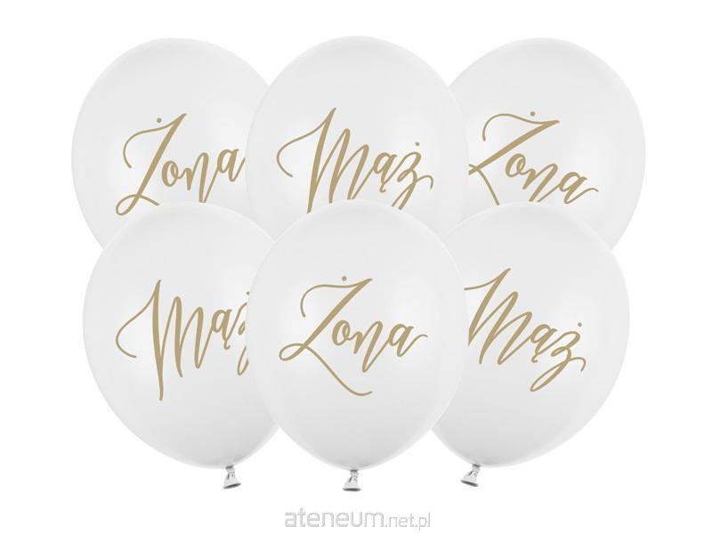 Balony Strong, Pastel Pure White ze złotym dwustronnym nadrukiem: Żona (3 szt.) i Mąż (3 szt.), średnica 30 cm.(1 op. / 6 szt.)
