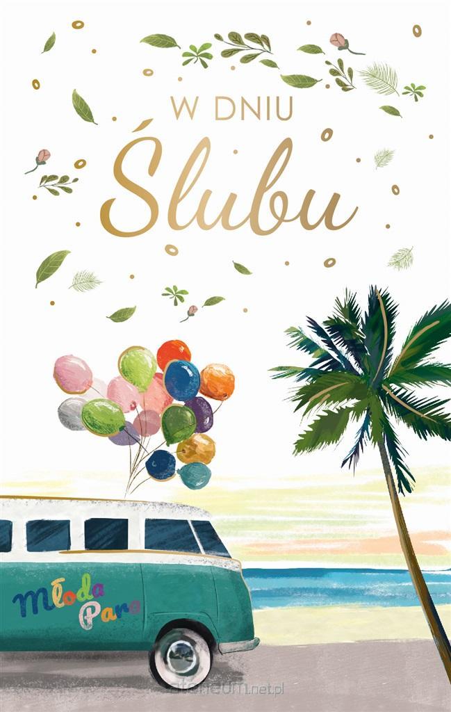 Karnet drewniany C6 + koperta Ślub bukiet i serce