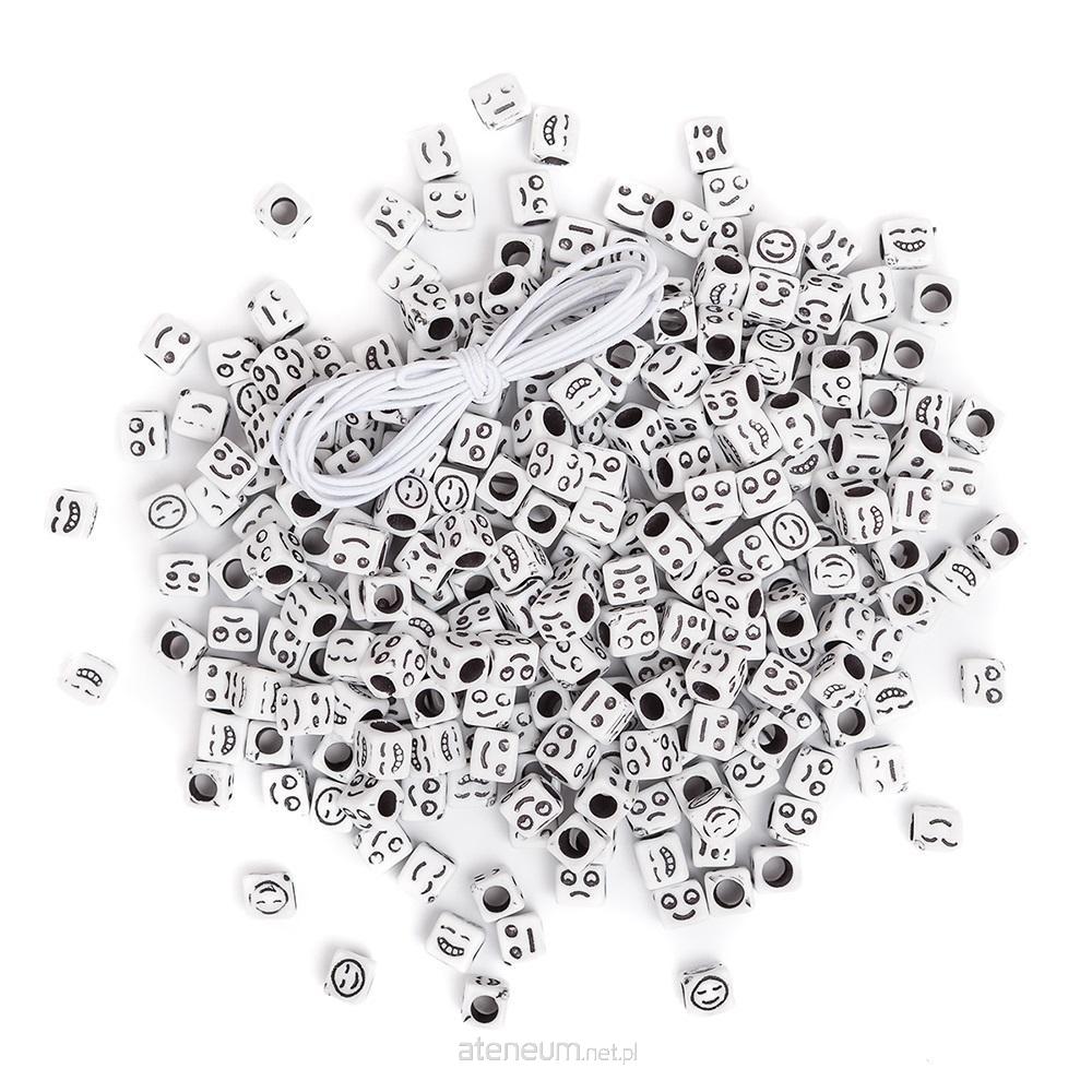 Kwadratowe, białe koraliki z czarnymi emotikonami dodadzą humoru Twoim projektom! Dzięki koralikom z charakterystycznymi buźkami, spersonalizujesz bransoletki, breloki, oryginalne zakładki do książek i kartki okolicznościowe.. Koraliki posiadają ot