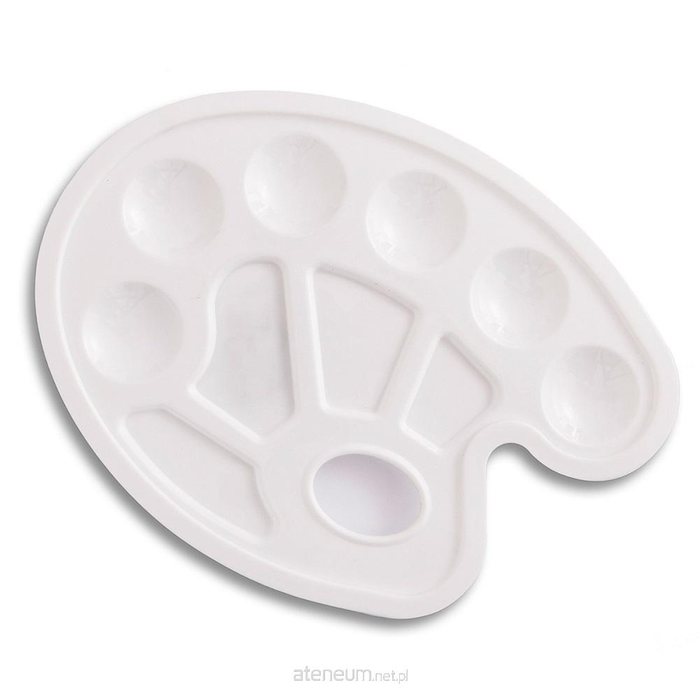 Paleta malarska plastikowa, owalna. Polecana głównie do farb akrylowych, temper i akwareli. Wymiary (około): 23 x 17 cm. Kolor: biały