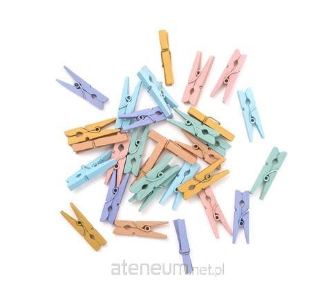 Dekoracyjne, małe klamerki w sześciu pastelowo-tęczowych kolorach.