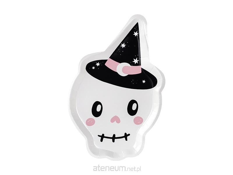 Talerzyki papierowe Czaszka, mix kolorów, wymiary ok. 18 x 27 cm.(1 op. / 6 szt.)