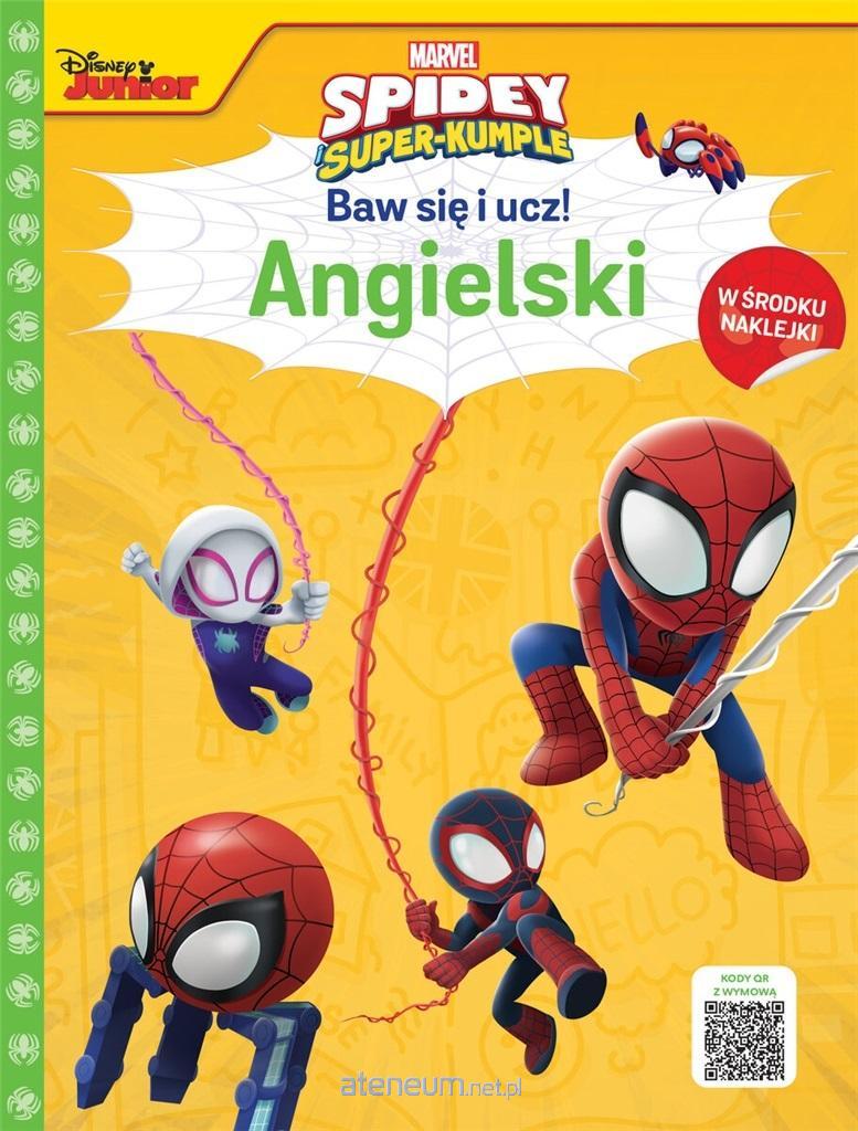 Nauka angielskiego w towarzystwie Pajęczej Drużyny oraz ich przyjaciół to wspaniała przygoda. Na dzieci czeka kilkadziesiąt ciekawych zadań i kolorowanek, w których występują m.in. Spidey, Ghost-Spider, Spin, Hulk i Ms. Marvel. Przedszkolaki będą kolorować, pisać po śladzie, szukać różnic i uzupełniać obrazki naklejkami, a przede wszystkim ćwiczyć wymowę.
