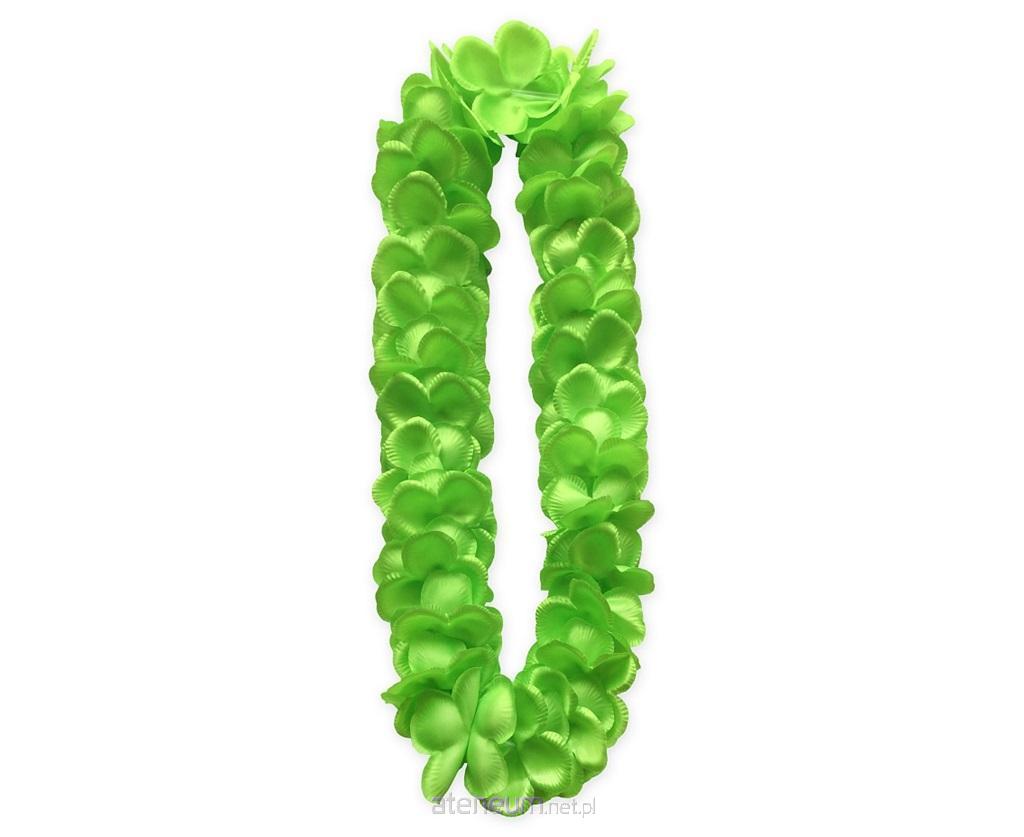 NASZYJNIK HAWAJSKI SATYNOWY Długość: ok. 120 cm Ilość sztuk w opakowaniu: 1 Kolor: zielony Wykonany z materiałowych zielonych kwiatów. Kwiaty oddzielone są od siebie przeźroczystymi, cienkimi słomkami, dzięki czemu nie ściągają się ani nie zsuwają w jedno miejsce.