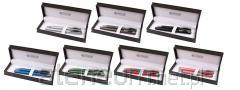 zestaw długopisu metalowego oraz ołówka automatycznego, mechanizm obrotowy, wymienny wkład F-Parker, grubość linii 0,7 mm, niebieski kolor tuszu (długopis), grubość grafitu 0,5 mm (ołówek automatyczny), luksusowe pudełko