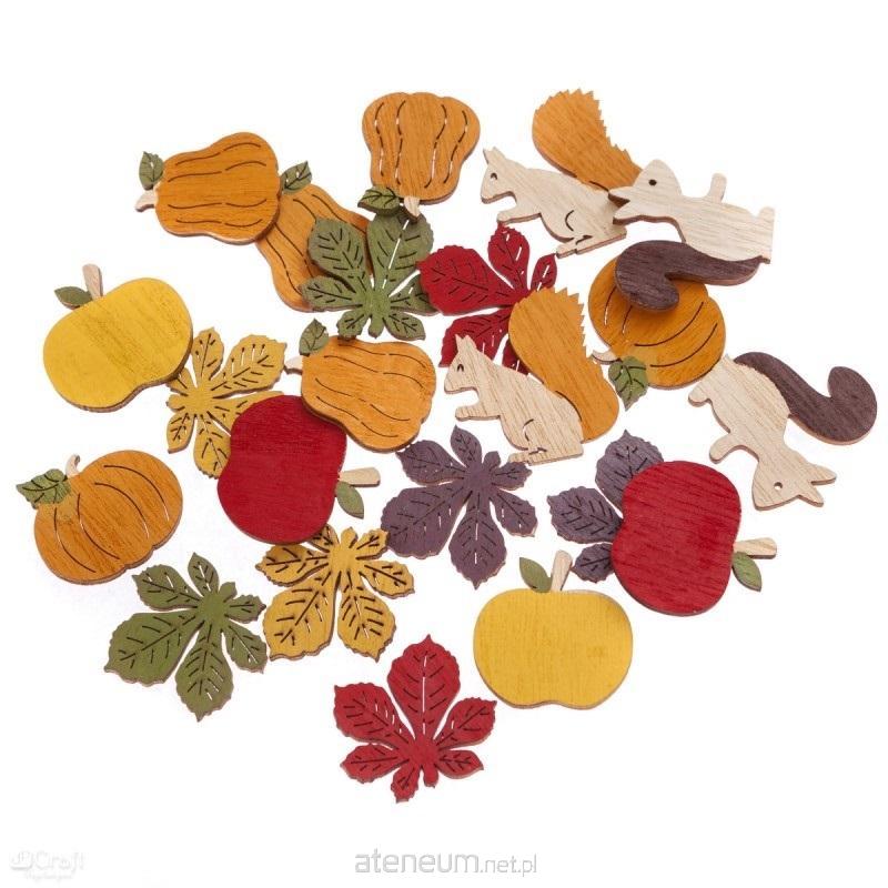 Drewniane, samoprzylepne motywy jesienne to idealny dodatek do prac kreatywnych. Posiadają delikatne, ozdobne wycięcia. Sprawdzą się doskonale przy projektach typu scrapbooking i cardmaking. Można użyć ich do ozdabiania kartek okolicznościowych.