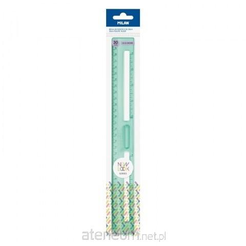 Linijka 30 cm zielona, przezroczysta z kolekcji NEW LOOK. Wykonana z trwałego i sztywnego tworzywa sztucznego. Skala w centymetrach i calach. Rozmiar linijki: 32 x 3,7 x 1 cm.