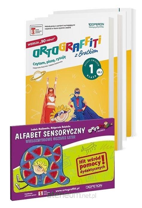 Zestaw pierwszoklasisty zawiera dwa zeszyty ćwiczeń, karty pracy oraz innowacyjną i niezwykłą pomoc do nauki liter, czyli Alfabet sensoryczny. W każdym semestrze nauki wykorzystacie jeden zeszyt i mniej więcej połowę kart pracy. To oznacza, że dysponujecie materiałami na cały rok i możecie śledzić na bieżąco postępy w nauce.