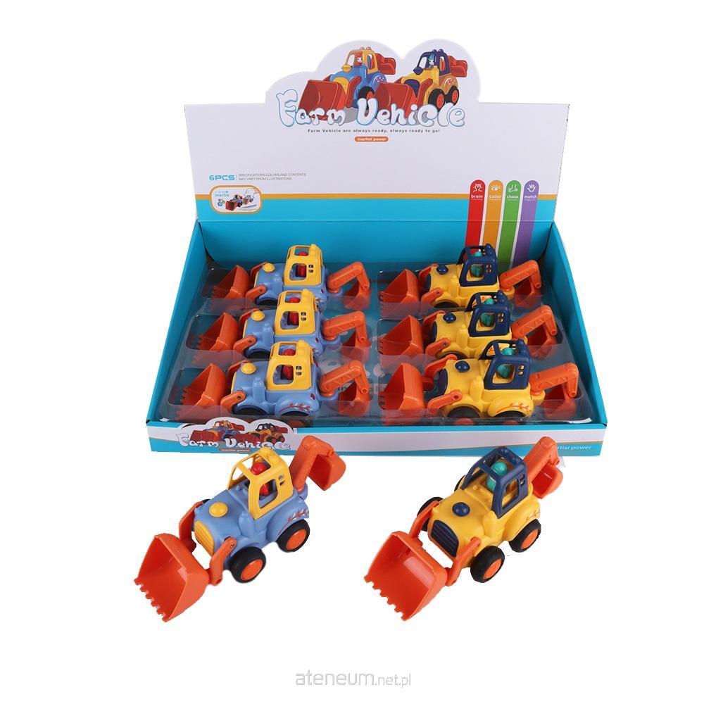Traktorek plastikowy z koparką i ładowarką. Występuje w dwóch kolorach. Działa na wolne koło. Wymiary traktorka: 17 x 7 x 8 cm.