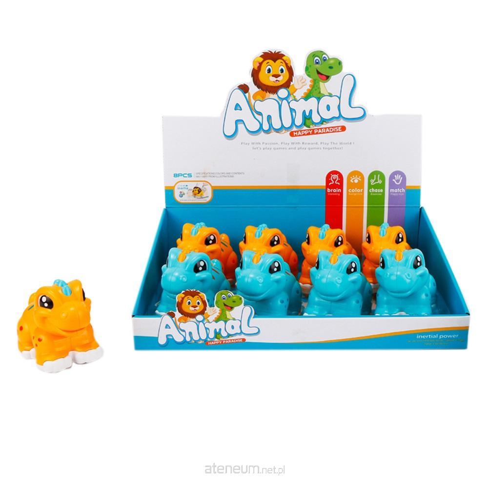 Plastikowy dinozaur w dwóch kolorach, działający na wolne koło. Wymiary dinozaura: 11 x 6.5 x 9 cm.