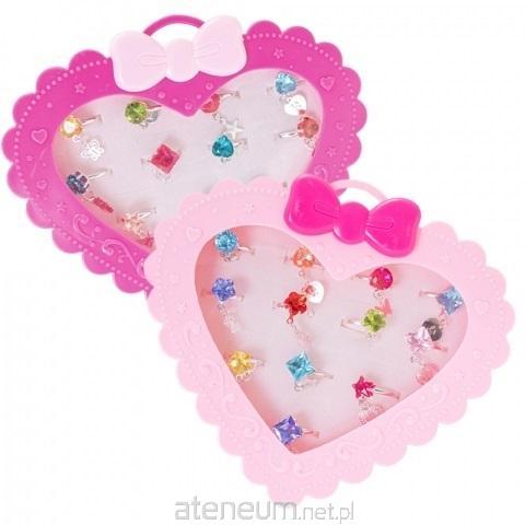 Zestaw 12 pierścionków z przywieszką, umieszczonych w opakowaniu w kształcie serduszka. Wymiary serduszka - 33 x 2 x 11.5 cm.