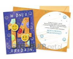 Kartka B6 z ozdobnej serii Dream Cards na urodziny - nieduża, ale robi wrażenie dzięki atrakcyjnej kolorystyce i ciekawym zdobieniom. To idealny wybór łączący przyjazną cenę z jakością. Cechy szczególne: wielkość: B6, 16.6 x 11.7 cm po złożeniu, koperta: w zestawie, kolorowa, zdobienia: kolorowe, różnorodne, bogate (w zależności od wzoru: przyklejane dekoracje, elementy biżuteryjne, odstawniki, brokat metaliczne folie, tłoczenia itp.), okazja: urodziny