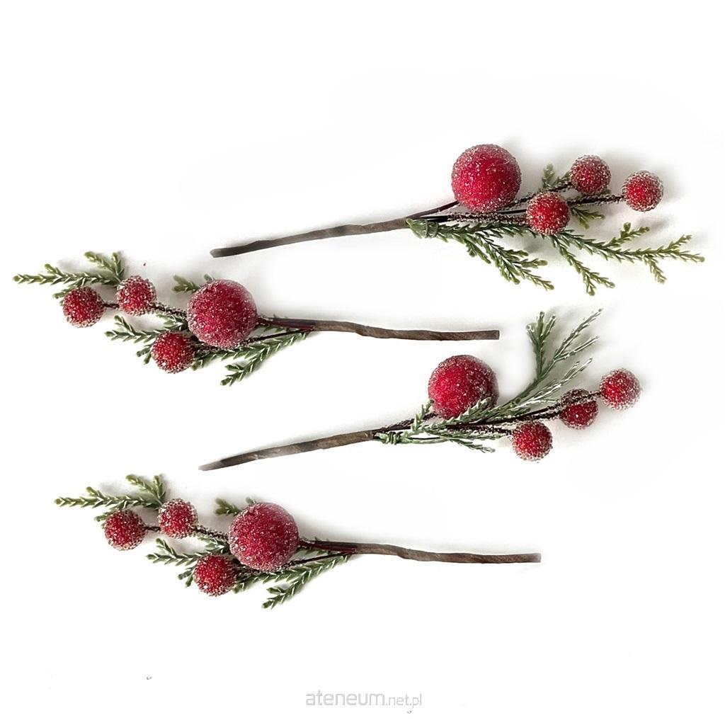 Gałązki z drobnymi czerwonymi jagodami do złudzenia przypominające naturalne. Pokryte drobnymi kryształkami szronu, który wspaniale podkreśli mroźny charakter zimowych i świątecznych kompozycji. Umocowane na druciku, który można w łatwy sposób modelować.