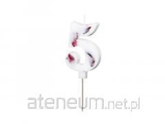 Świeczka urodzinowa cyfra 5 biała z płatkami 8cm