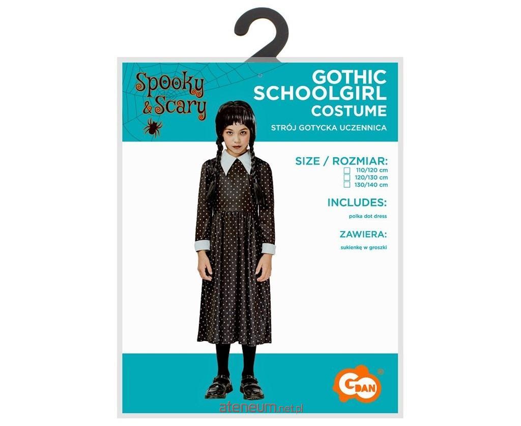 STRÓJ DLA DZIECI GOTYCKA UCZENNICA (SUKIENKA W GROSZKI) Rozmiar: 120/130 cm Materiał: poliester lość sztuk w opakowaniu: 1