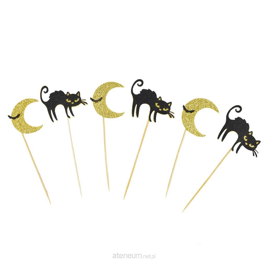 Dekoracja halloweenowych wypieków. Podkreśl wyjątkowy charakter tego dnia przy pomocy nieodłącznych motywów dla tego święta - czarnych kotów i nietoperzy. Całość iskrzy się brokatem. W opakowaniu znajduje się 6 pickerów - po 3 z każdego wzoru. Wysokość pickerów wynosi ok. 17 cm.