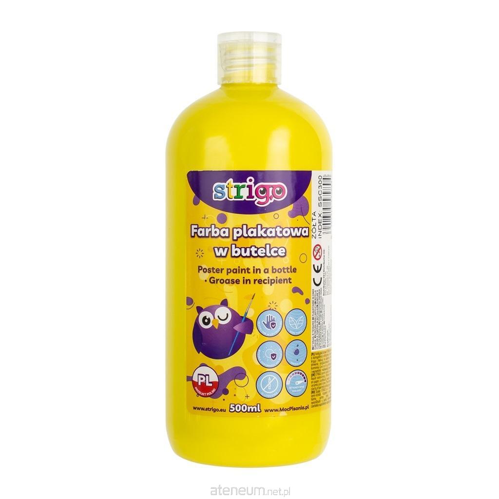 Farby plakatowe STRIGO w butelce o konsystencji półpłynej, która ułatwia nakładanie farby i mieszanie kolorów. Doskonale kryją i nadają się do wielu powierzchni. Świetnie sprawdzą się do malowania na papierze, kartonie, drewnie, nieglazurowanej ceramice, kamieniu. Farby są odporne na działanie światła oraz na ścieranie. Wygodne i szybkie w użyciu. Wyprodukowane zostały na bazie najwyższej jakości pigmentów, które gwarantują intensywność i wyrazistość malowanych powierzchni. Zmywalne z większości tkanin. Farby w plastikowych butelkach o pojemności 500 ml. Do wyboru różne kolory. Odpowiednie dla dzieci w wieku powyżej 3 lat.