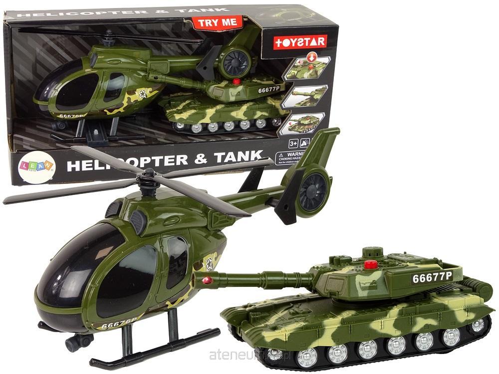 Zestaw Militarny Czołg Napęd Frykcyjny Helikopter Zapraszamy do świata pełnego akcji i przygód z naszym niezwykłym zestawem - realistycznym czołgiem oraz helikopterem militarnym! Dostarczy on emocji i niezapomnianych chwil zabawy małym miłośnikom wojskowych operacji. Czołg to prawdziwa miniatura potężnej maszyny bojowej. Jego realistyczny wygląd odzwierciedla charakterystyczne cechy prawdziwych pojazdów, dzięki czemu dzieci mogą wcielić się w role odważnych dowódców militarnych. Zastosowany napęd frykcyjny sprawia, że potrafi on poruszać się do przodu i tyłu, wzbudzając wrażenie autentycznego ruchu. A co więcej, może on również obracać się wokół własnej osi, umożliwiając dynamiczne manewry i szybkie reakcje na zmieniające się sytuacje na polu walki. Ruchome elementy, takie jak armata, dodają realizmu i umożliwiają dzieciom tworzenie różnorodnych scenariuszy i akcji bojowych. Jednak prawdziwą atrakcją jest czerwony guzik umieszczony na górze pojazdu. Po naciśnięciu go, czołg ożywa. Różnorodne dźwięki, od odgłosów silnika po efekty strzałów, w połączeniu ze świetlnymi efektami, tworzą autentyczną atmosferę. Jego wymiary wynoszą: 19 cm x x 6 cm x 7,5 cm, co czyni go kompaktowym i łatwym do trzymania w rękach, a także idealnym do przenoszenia w różne miejsca. Helikopter wygląda bardzo realistycznie, dzięki czemu zapewnia niesamowite doświadczenia miłośnikom techniki wojskowej i lotniczej. Ten imponujący model wyróżnia się przyciemnianymi szybami, które nadają mu tajemniczy wygląd, oraz ruchomymi elementami, które dodają interaktywności. Ruchome elementy, takie jak obracające się śmigło, zapewniają interaktywność i pozwalają na odtworzenie dynamicznego wyglądu startu i lotu. Jego wymiary wynoszą: 26 cm x 12 cm x 7,5 cm, co sprawia, że jest kompaktowy, a jednocześnie dostatecznie imponujący, by zachwycić zarówno dzieci, jak i dorosłych. To idealny model do kolekcji dla pasjonatów lotnictwa! Cały zestaw wykonany jest wykonany z trwałego plastiku, zaprojektowanego tak, aby wytrzymał nawet intensywną zabawę. To nie tylko źródło radości i zabawy, ale także świetny sposób na rozwijanie wyobraźni, kreatywności i umiejętności manualnych u najmłodszych. Pozwól swojemu maluchowi wejść w świat wojskowych operacji i akcji! Elementy zestawu: - czołg - helikopter Wymiary czołgu: 19 cm x 6 cm x 7,5 cm Wymiary helikoptera: 26 cm x 12 cm x 7,5 cm Wymiary opakowania: 36,5 cm x 17 cm x 11 cm Posiada certyfikat CE, ponadto jest zgodny z normą EN71. Zabawka przeznaczona jest dla dzieci powyżej 3 roku życia.