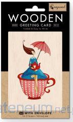 Karnet drewniany C6 + koperta Kobieta w filiżance