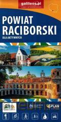 Mapa powiatu raciborskiego, w skład którego wchodzą gminy: Racibórz, Kornowac, Nędza, Kuźnia Raciborska, Rudnik, Pietrowice Wielkie, Krzanowice, Krzyżanowice. Szczególnie atrakcyjne miejsca zaznaczono żółtą ramką. Podano aktualne przebiegi szlaków pieszych, rowerowych i dydaktycznych, łącznie z kilometrażem, co pozwala łatwiej zaplanować wycieczkę. Za pomocą wyraźnych, charakterystycznych znaków wskazano miejsca, gdzie można aktywnie spędzić wolny czas.