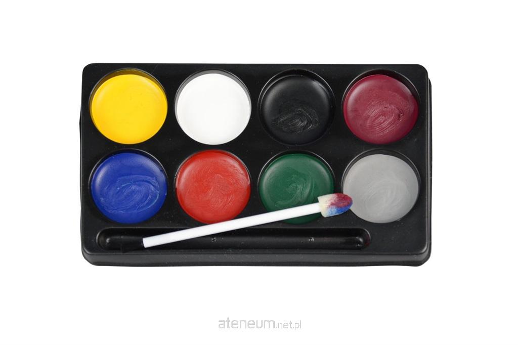 Produkt do charakteryzacji w formie farby. Polecany do tworzenia niepowtarzalnego makijażu twarzy. Łatwa i bezpieczna aplikacja 7,5 g. Zestaw zawiera paletę 8 kolorów.