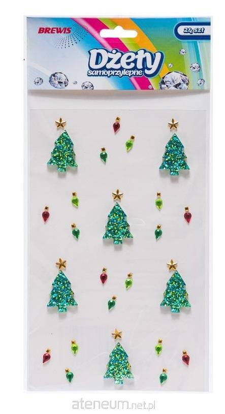 Dżety samoprzylepne choinki ilość: 24 szt kolor: zielony, złoty, czerwone