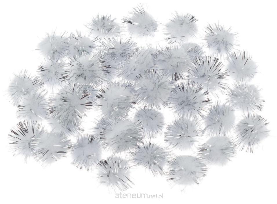 Pompony metalizowane rozmiar: 20 mm ilość: 40 szt kolor: srebrny