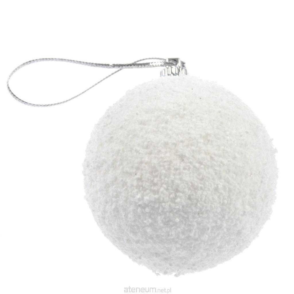 Zestaw białych, ośnieżonych bombek. Średnica 6 cm, 6 sztuk w opakowaniu.