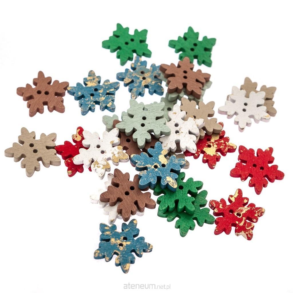 Drewniane guziki śnieżynki w zimowo-świątecznych kolorach, to świetny dodatek do bożonarodzeniowych projektów kreatywnych. Dodatkowym zdobieniem na części śnieżynek są złote przetarcia, nadające stylowego połysku. Guziki te sprawdzą się idealnie jako oz
