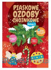 PIASKOWE OZDOBY ŚWIĄTECZNE to znakomita zabawa dla starszych i młodszych dzieci oraz całej rodziny. Każdy może stworzyć swoją niepowtarzalną dekorację świąteczną, którą ozdobi choinkę i dom. W opakowaniu znajdują się gotowe kartonowe elementy do wyjęcia, patyczek, woreczki z piaskiem (8 kolorów) i naklejki. Jak wykonać dekoracje? Delikatnie wypychamy ozdobę, którą chcemy wykonać i rozpoczynamy jej dekorowanie. Za pomocą patyczka odklejamy wybrany element dekoracji i ten lepki fragment posypujemy kolorowym piaskiem. Nadmiar piasku zsypujemy. Kolorujemy w ten sposób całą ozdobę. Następnie z drugiej strony przyklejamy odpowiednią naklejkę z zestawu.