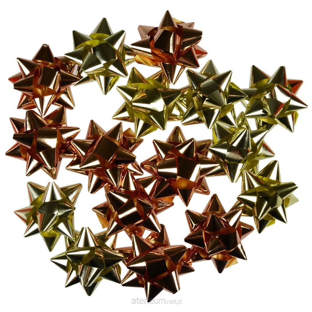Kokardki samoprzylepne jako element dekoracyjny. Wielkość: 7 cm. W opakowaniu 16 szt. kolor złoty