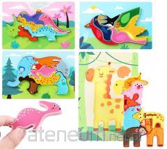 W zestawie: kolorowa podstawa, 7 elementów ilustrujących dinozaury, każdy z elementów posiada uchwyt, wym opk: 30 x 21,5 x 0,5 cm., 3+