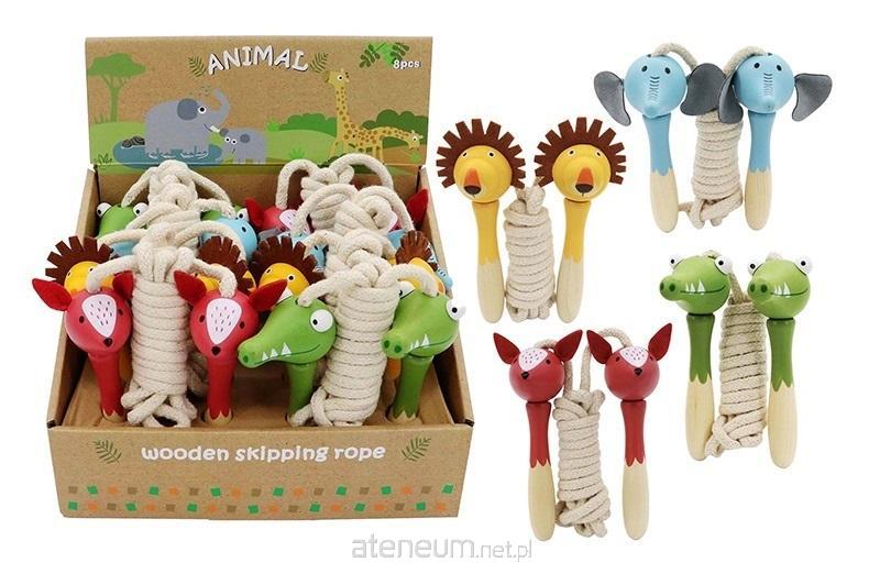 Sznurek: pleciony, grubość 5 mm., Drewniane rączki, długość skakanki: 210 cm., Długość rączki: 12 cm., Wym. Opk: 21,5 x 14 x 17 cm., 3+