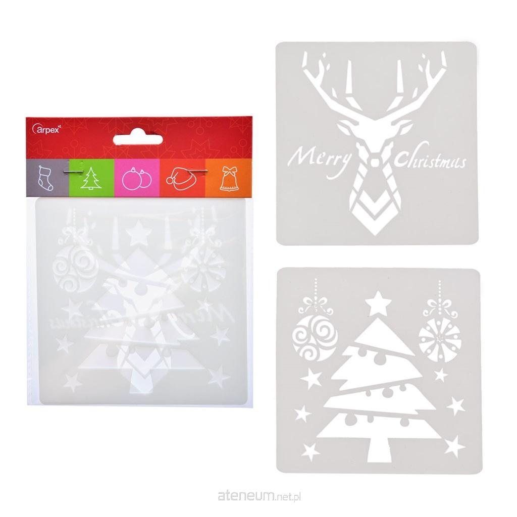 Szablony o wymiarach 13x13 cm do przyozdabiania gładkich powierzchni sztucznym śniegiem. W opakowaniu znajdują się 2 wzory