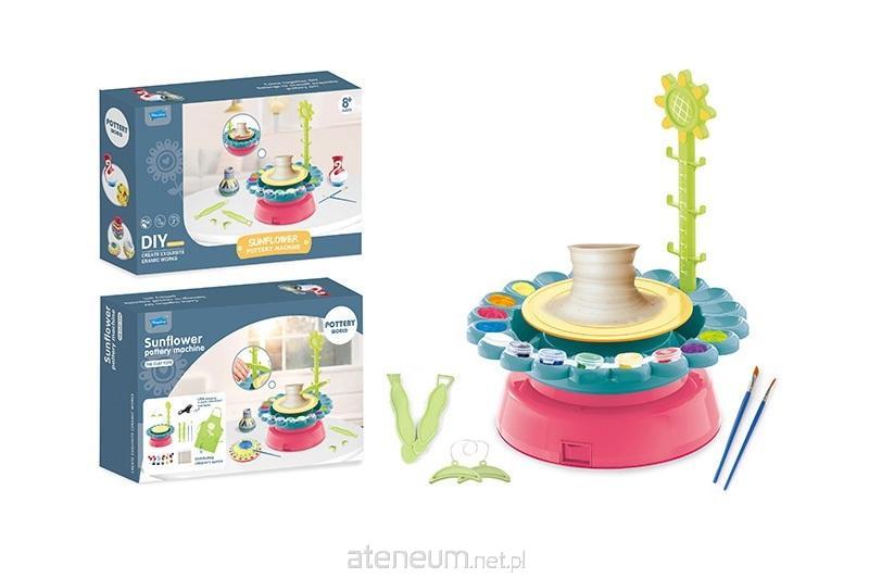 W zestawie: podstawa maszyny garncarskiej, paleta na farby, obrotowy dysk, filar rzeźbiarski, 2 narzędzia rzeźbiarskie, kabel usb, 12 farb, 2 pędzelki, 3 bloki gliny, przyrząd do cięcia gliny, fartuszek, instrukcja, funkcje: 2 tryby prędkości obrotu, wym. Opk: 36 x 24 x 9 cm., Baterie: 4 x lr20 brak w zestawie, 8+
