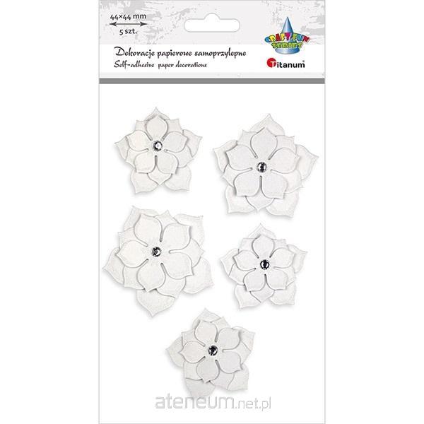 Dekoracje samoprzylepne papierowe 3D kwiaty białe z kryształkiem, 2 rozmiary: 60 x 58, 50 x 48. 5 sztuk.