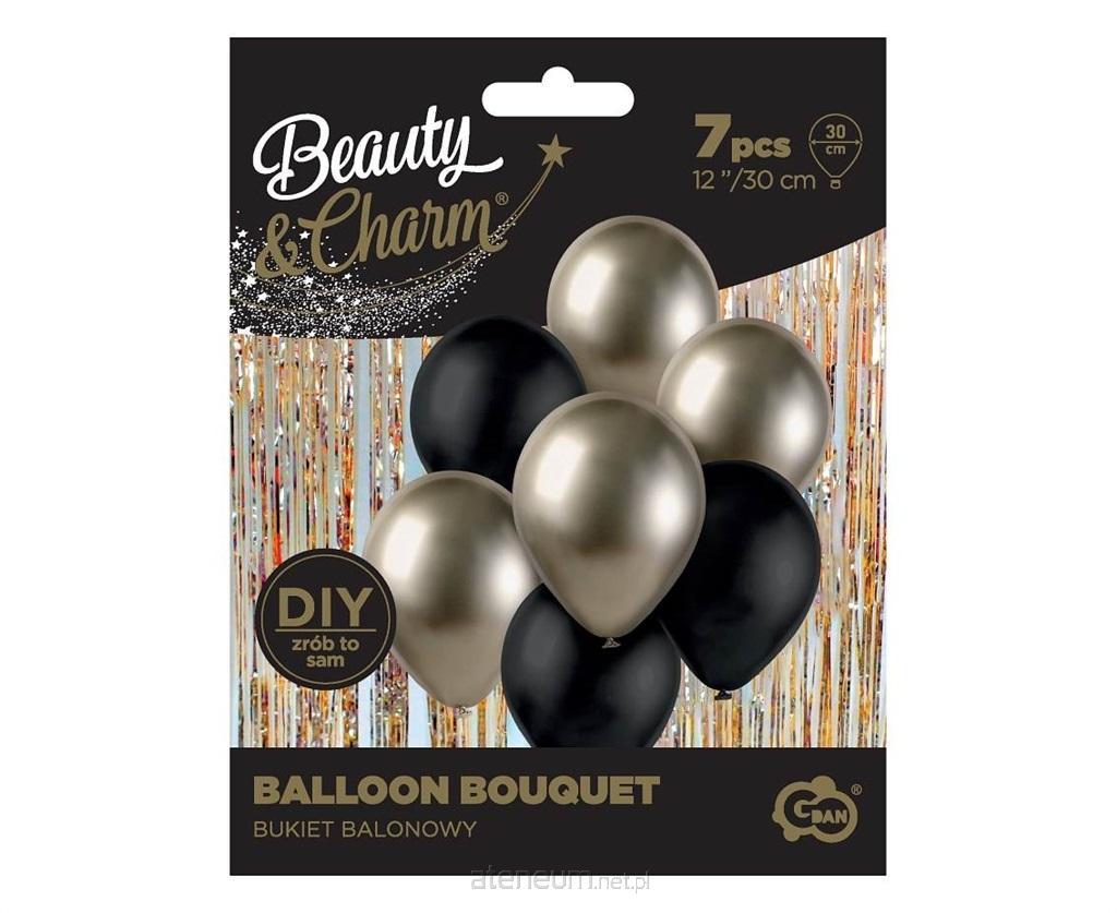 Balony B&C srebrno-czarny Happy Birthday 7szt