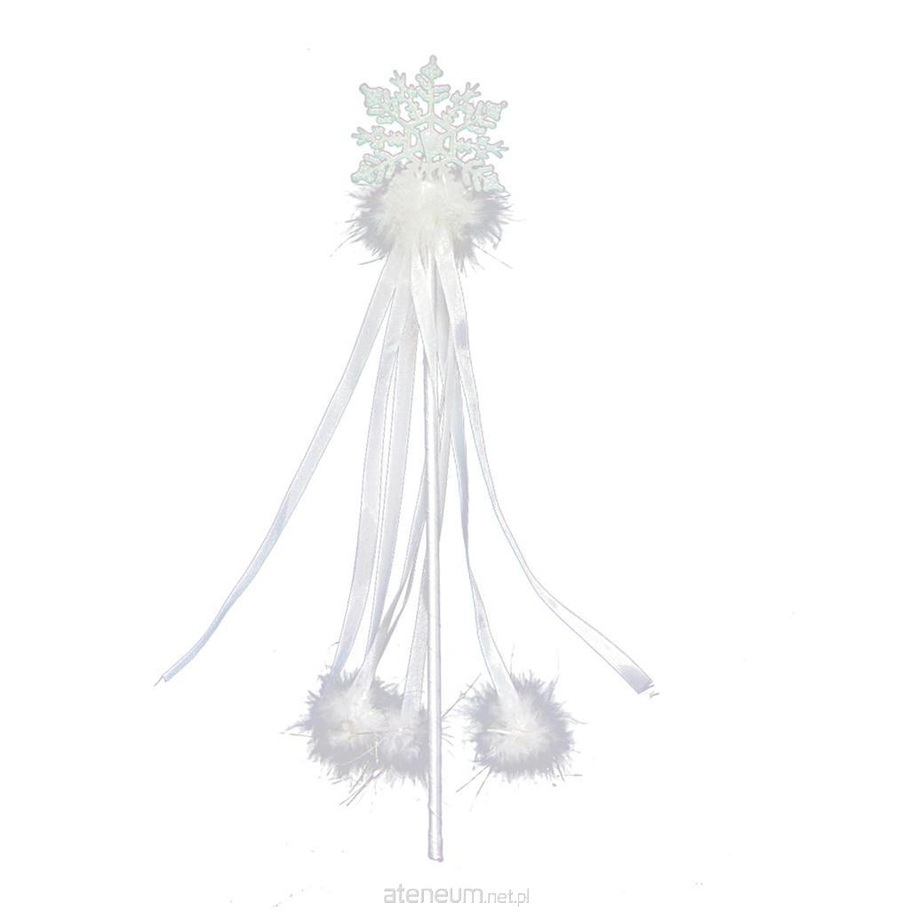 Różdżka ze śnieżynką i wstążeczkami z pomponikami. Idealny dodatek do stroju śnieżynki. Długość: 42 cm. Kolor: biały