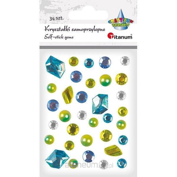 Kryształki samoprzylepne mix wzorów, tonacja niebiesko-zielona 33 szt. Rodzaj: okrągłe 108 mm, kamyki 13 x 18 mm, perełki 10, 8 mm.