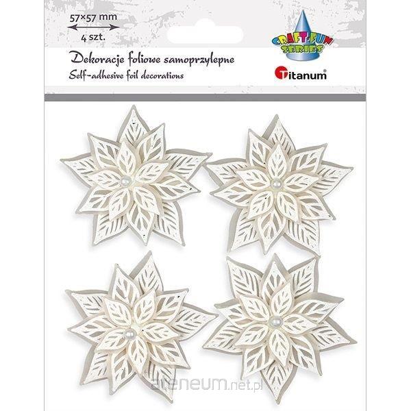 Dekoracje samoprzylepne foliowe 3D poinsecje 60 x 57 mm białe z perełką 4 szt.