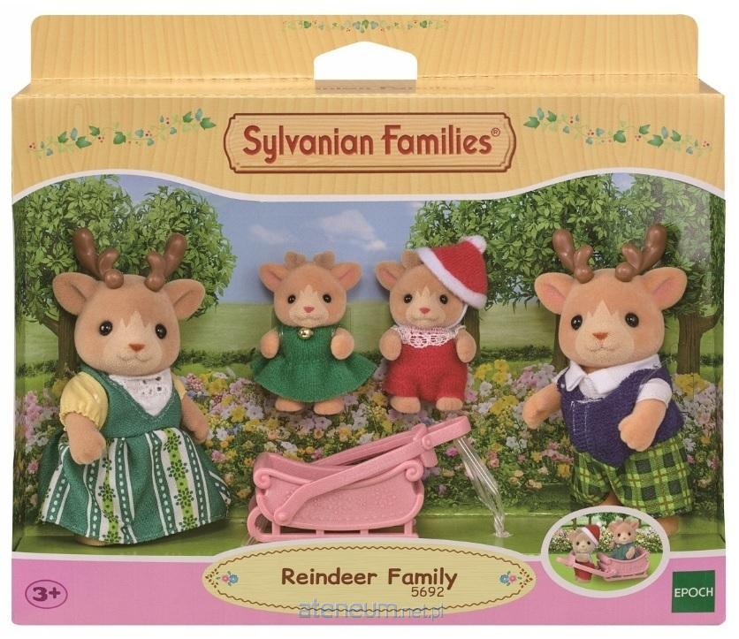Rodzina reniferów Sylvanian Families uwielbia święta Bożego Narodzenia. Jolly, tata renifer, dostarcza paczki w Sylvanian Village. Czy to prezenty, słodycze, czy inne rzeczy, dla taty renifera to nie problem. Ale czasem jest trochę roztrzepany i dostarcza paczkę pod niewłaściwy adres. Elm, mama renifer, pomaga mężowi dostarczać przesyłki. A gdy dostawa jest skomplikowana, zawsze znajduje dobre rozwiązanie. Luis, mały renifer, uwielbia Boże Narodzenie - przez cały rok nosi świąteczną czapkę i ciągle pyta: "Jak długo jeszcze do Bożego Narodzenia?" Chce pomóc mamie i tacie przy pracy, dlatego pakuje rzeczy na sanki i udaje, że to samochód dostawczy. Eve, córeczka renifer, kocha ozdoby świąteczne. Stale pyta: "Mogę zawiesić to na którymś z drzewek?" Drzewka wokół domu rodziny reniferów są obwieszone niezwykłymi dekoracjami. Zestaw figurek zawiera mamę, tatę, dwoje dzieci i sanki. Głowa, ramiona i nogi dużych figurek są ruchome. Ubranka można zakładać i zdejmować. Rodzina reniferów Sylvanian Families to aksamitnie miękkie figurki o wielkości od 4 do 8 cm przeznaczone dla dzieci od trzeciego roku życia.